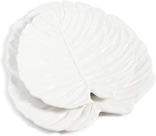 S/2 White Leaf Plates
