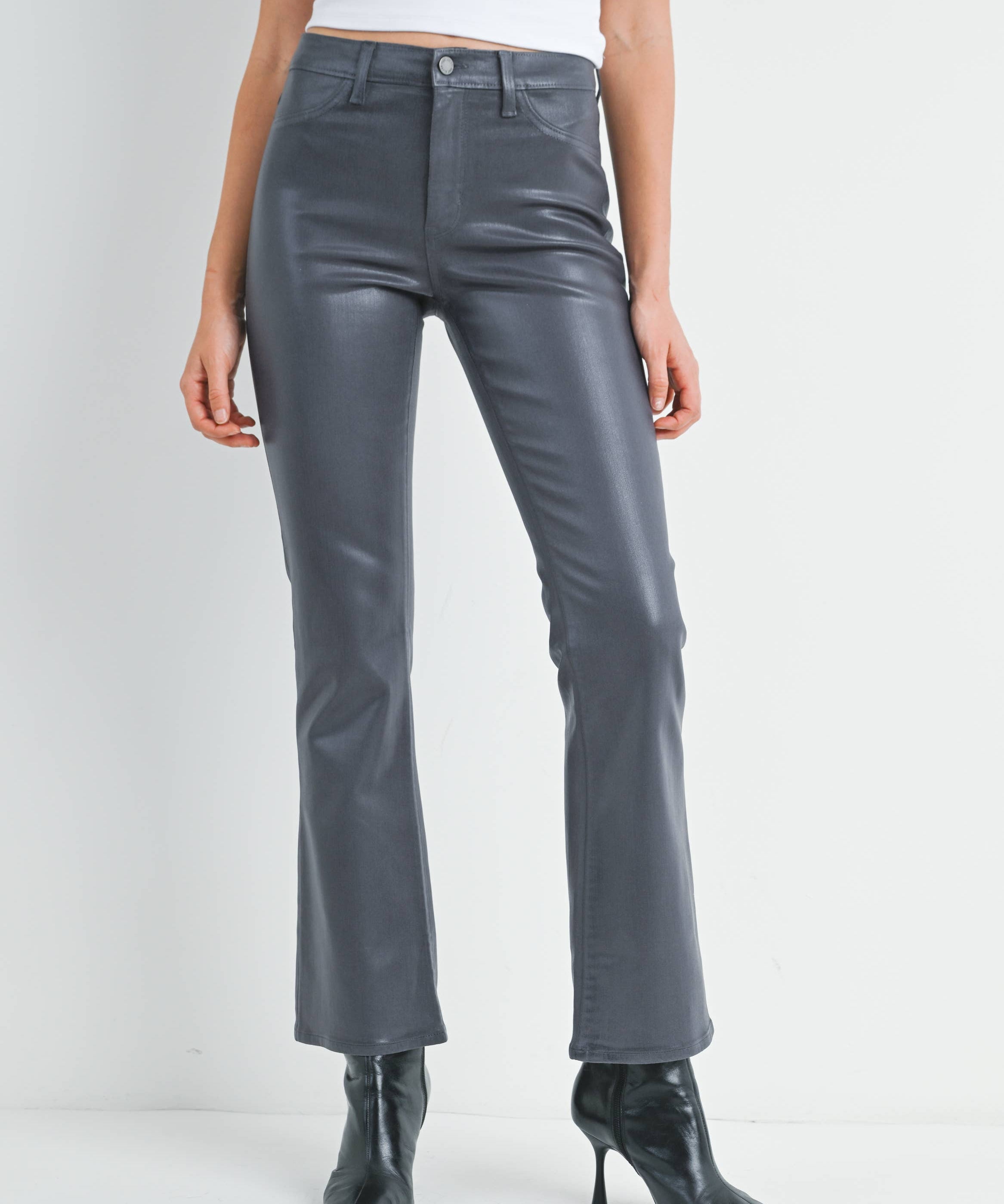 Slim Cropped Bootcut in Coated Black