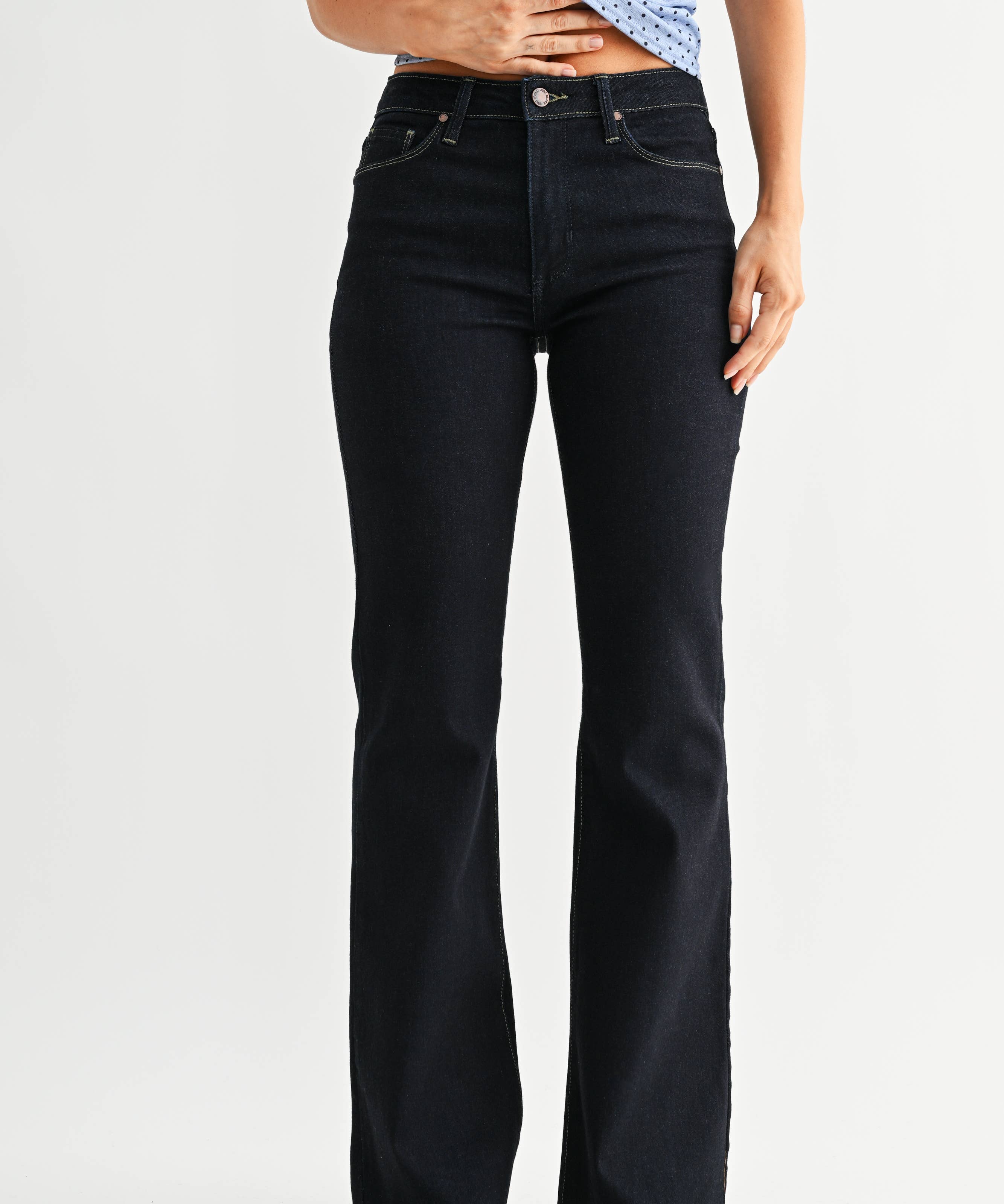High Rise Scissor Cut Flare-Dark Wash