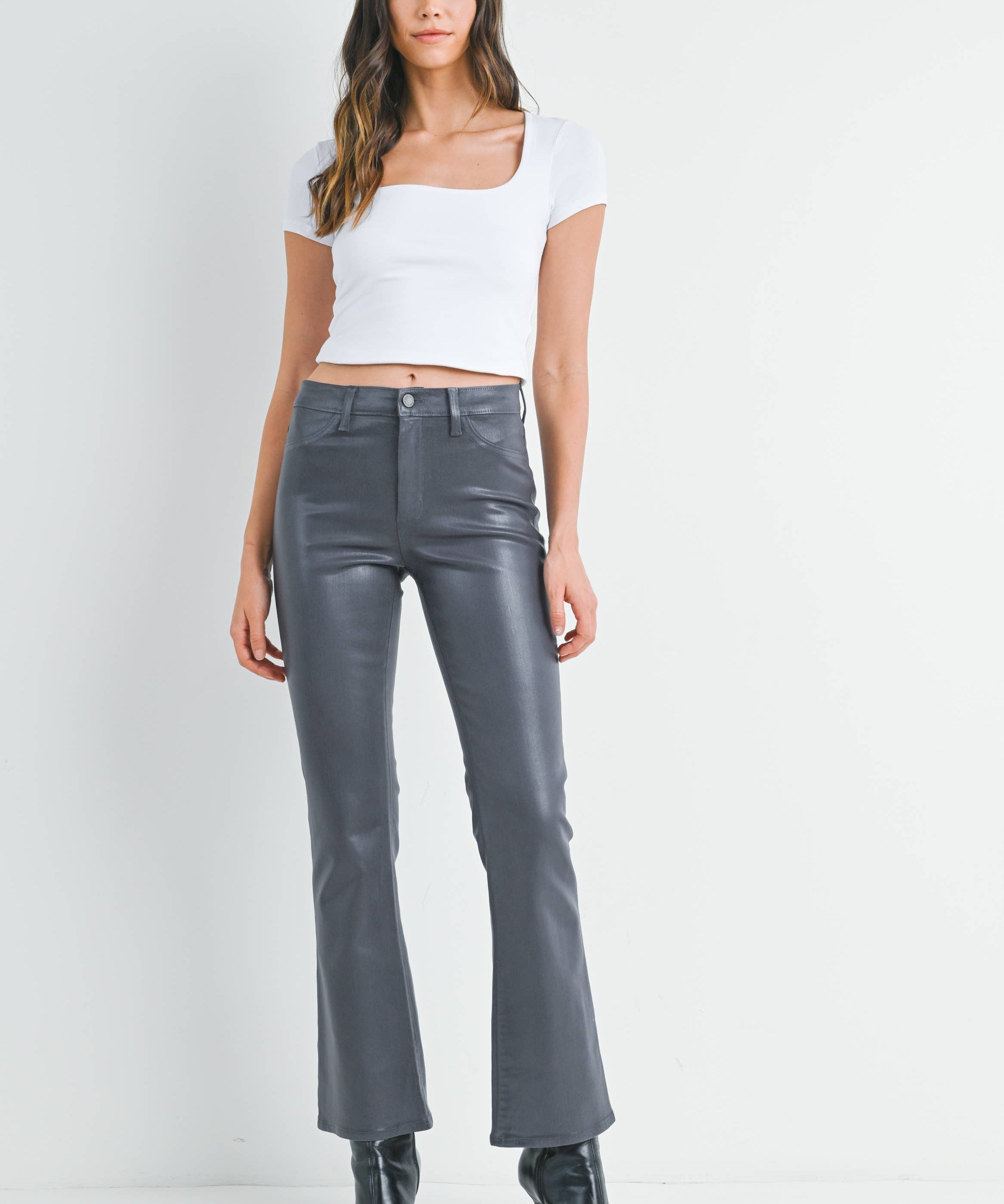 Coated Slim Bootcut w/ Scissor Cut-Coated Char