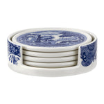 Spode Blue Italian 4 Piece Ceramic Coasters with Holder