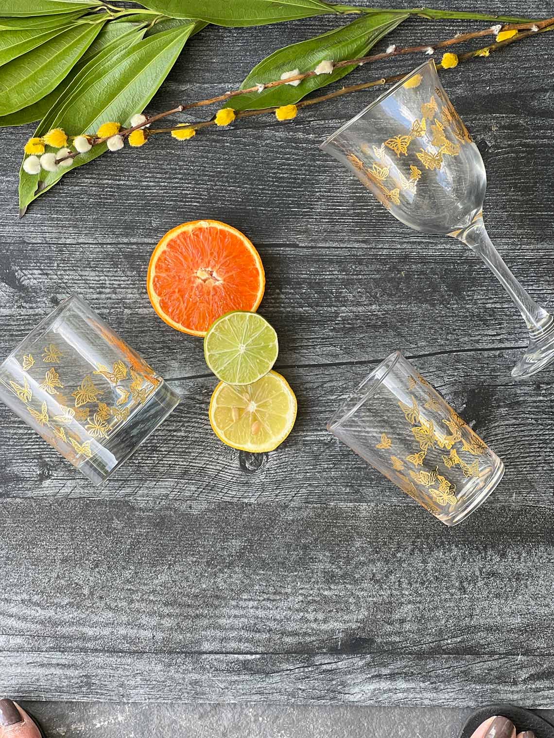 Set of 6 Tea Glasses Gold Little Butterflies