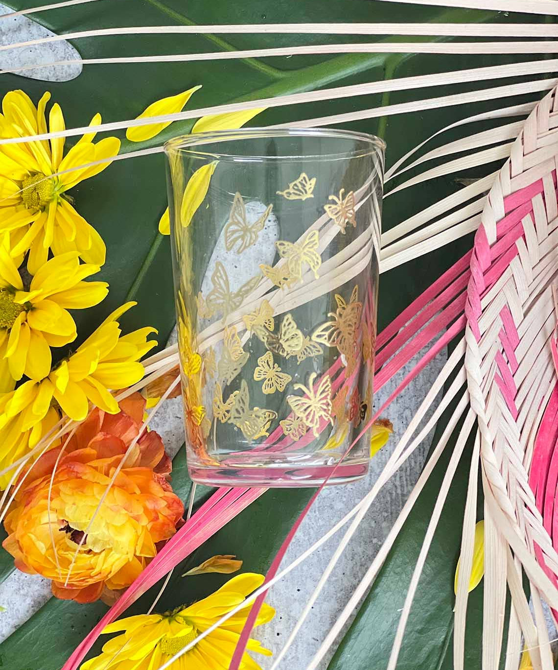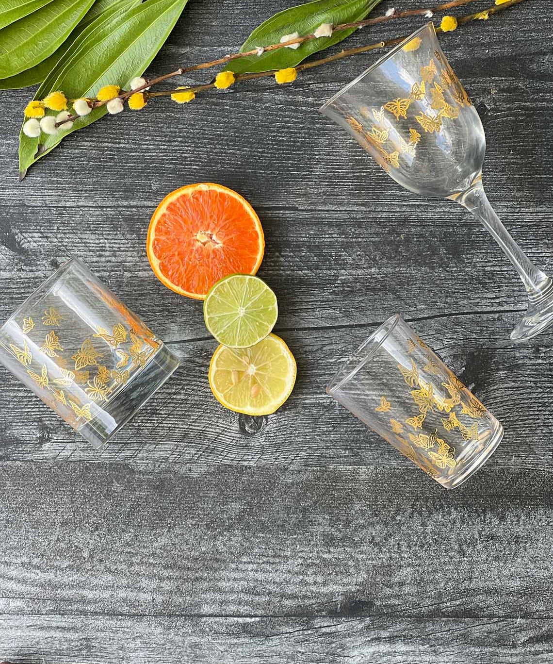 Set of 6 Tea Glasses Gold Little Butterflies