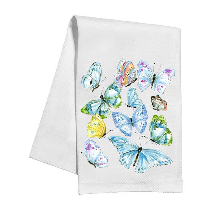 Handpainted Blue Butterflies Kitchen Towel
