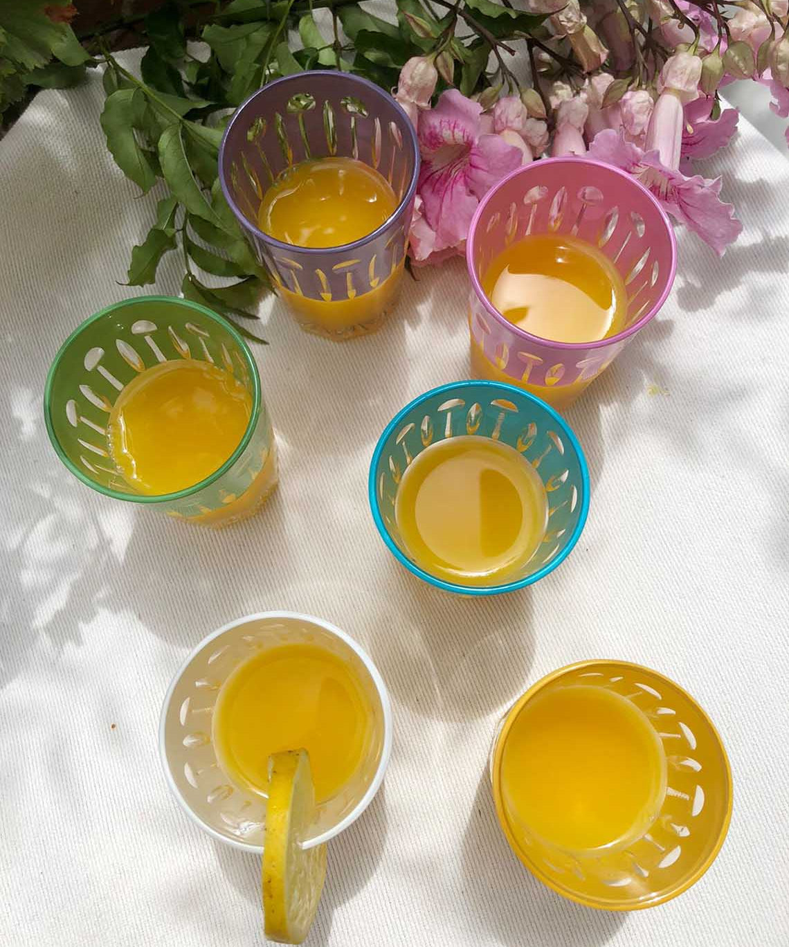 Set of 6 Tea Glasses Carved Crowns Pastels