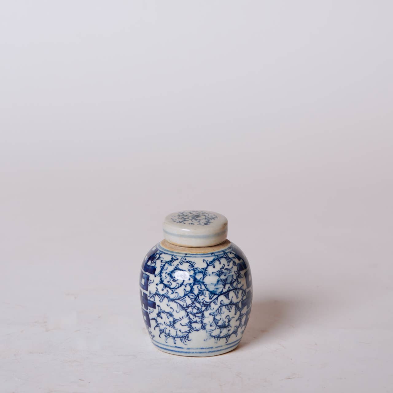 Blue and White Porcelain Mini Double Happiness Round Jar