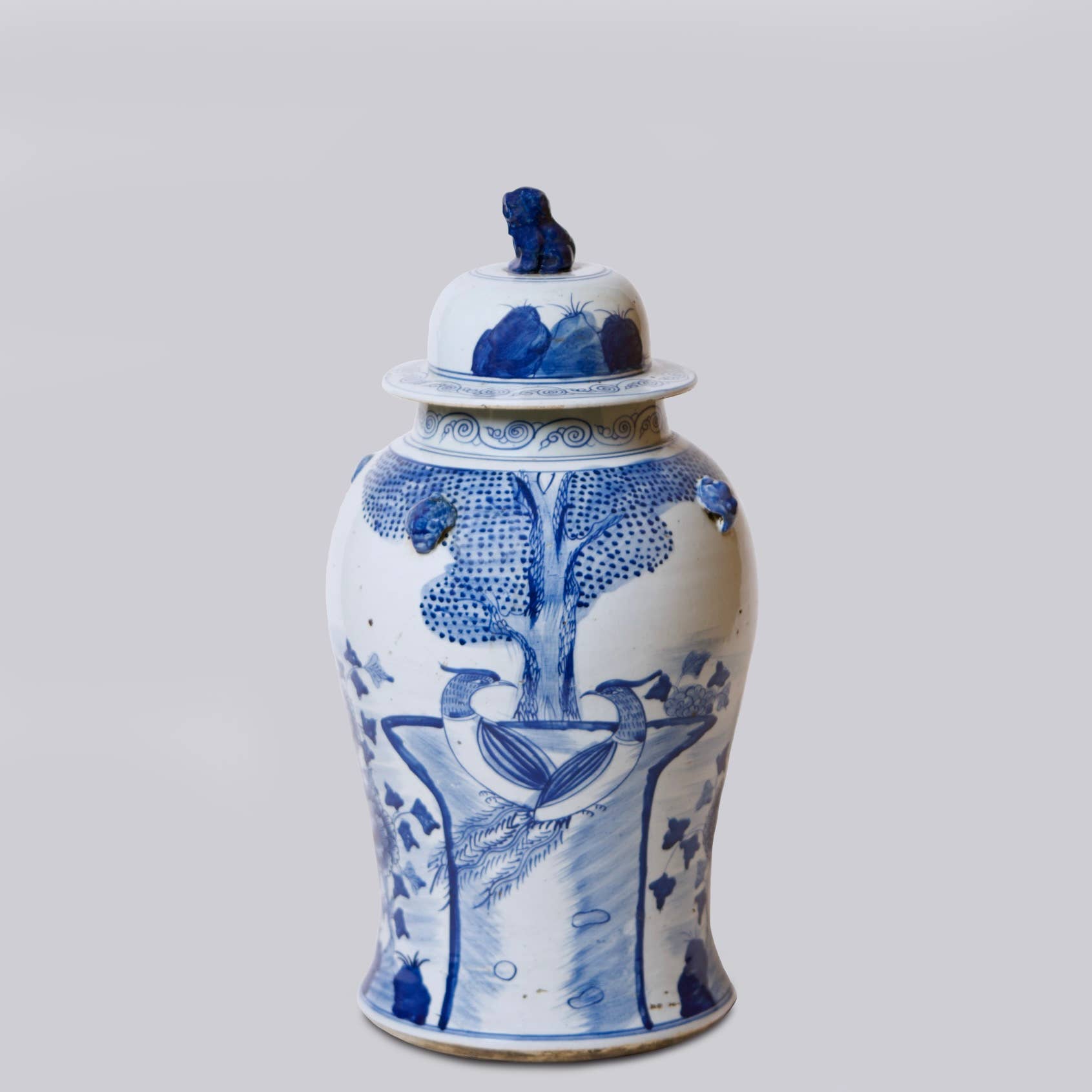 Phoenix Pair Blue & White Porcelain Temple Jar