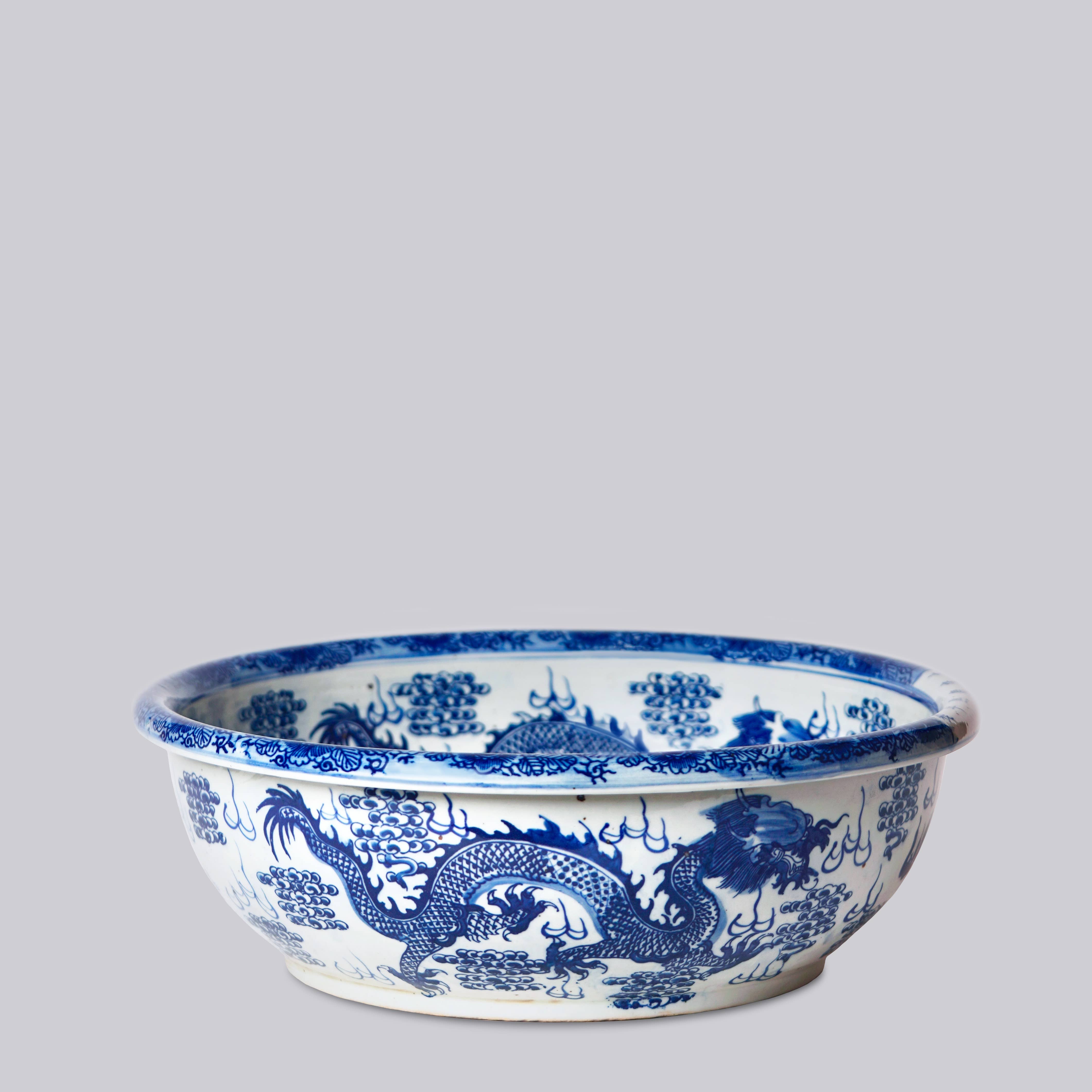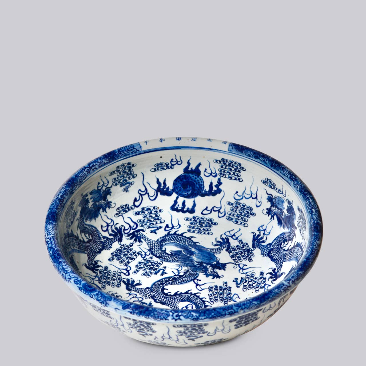 Blue and White Porcelain Dragon and Pearl Low Bowl