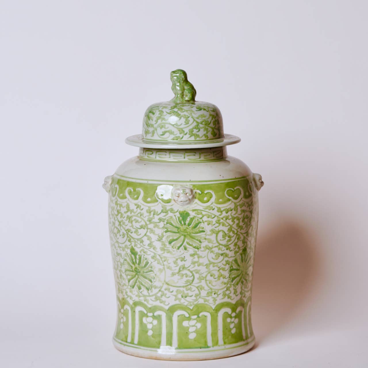 Green and White Porcelain Chrysanthemum Temple Jar
